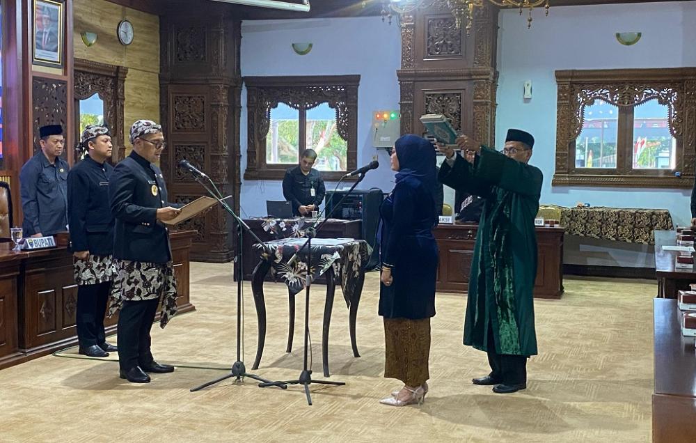 Bupati Batang M. Faiz Kurniawan (ketiga kiri), melantik Penjabat Sekretaris Daerah di Aula Bupati Batang, Kabupaten Batang, Selasa (8/4/2025). Bupati Batang menyampaikan, Sekretaris Daerah merupakan jabatan strategis di Pemerintahan daerah dimana mempunyai tugas membantu Kepala Daerah dalam penyusunan kebijakan dan pengkoordinasian administratif terhadap pelaksanaan tugas Perangkat Daerah, serta pelayanan administratif. Dengan jabatan yang baru, semoga dapat memberikan kinerja yang amanah, integritas, dan profesional untuk mengabdi di Kabupaten Batang. MC Batang, Jateng/Jumadi/Sri Rahayu