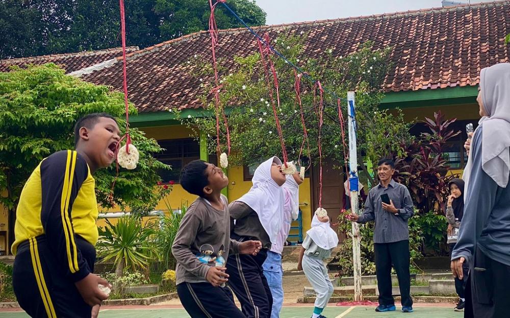 Sejumlah pelajar kebutuhan khusus hambatan pendengaran mengikuti lomba makan kerupuk dalam Memperingati HUT Ke-80 RI di Halaman Sekolah Luar Biasa (SLB) Batang, Kabupaten Batang, Selasa (12/8/2025). Wakil Kesiswaan SLB Batang Afifatun Nasikha mengatakan, lomba kemerdekaan ini menjadi ajang latihan motorik, sensorik, dan keseimbangan bagi anak-anak berkebutuhan khusus. MC Batang, Jateng/Roza/Jumadi