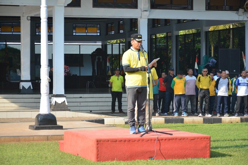 Bupati Batang Wihaji, memberikan sambutan Apel Pagi Peringatan Hari Olah Raga Nasional (Haornas) ke-36 di halaman Pendopo Kabupaten Batang, Jumat (13/9/2019). Bupati Batang mengatakan pembangunan dalam olahraga tidak hanya jasmani saja, tetapi juga rohani untuk mendukung kebijakan Presiden Republik Indonesia tentang revolusi mental, serta Sumber Daya Manusia Unggul Indonesia Maju. MC Batang, Jateng/Jumadi/Ardhy
