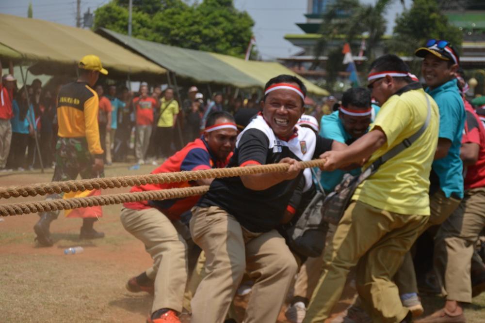 Sejumlah peserta, melakukan lomba tarik tambang dalam Peringatan Hari Ulang Tahun Tentara Nasional Indonesia (TNI) ke-74 dan Kodam IV/Diponegoro ke-69 di Alun-alun Kabupaten Batang, Rabu (18/9/2019). Kegiatan ini diikuti oleh berbagai tim dari Organisasi Perangkat Daerah, Organisasi Masyarakat, dan anggota TNI. MC Batang, Jateng/Jumadi/Ardhy