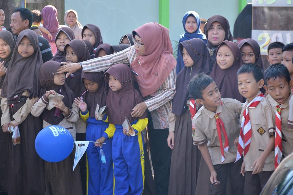 Sejumlah pelajar Sekolah Dasar, berbaris untuk menyambut kedatangan peserta jalan sehat di Jalan Pemuda Kabupaten Batang, Jumat (20/9/2019). Kegiatan ini dalam rangka Peringatan Hari Statistik Nasional. MC Batang, Jateng/Jumadi/Ardhy