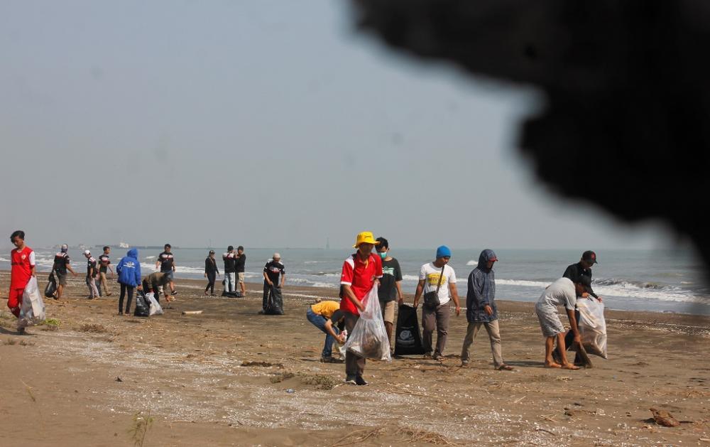 Sejumlah relawan, melakukan aksi bersih lingkungan dalam memperingati World Cleanup Day di Pantai Muara Rejo, Kecamatan Kandeman, Kabupaten Batang, Sabtu (21/9/2019). Kegiatan ini diikuti oleh 200 relawan dari berbagai komunitas se-Kabupaten Batang. MC Batang, Jateng/Ardhy