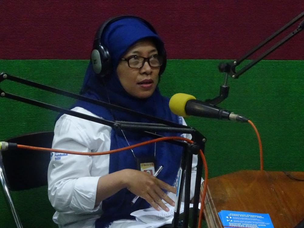 Narasumber dari Badan Pusat Statistik Kabupaten Batang Een, menjawab pertanyaan yang diajukan dalam Dialog Interaktif di LPPL Radio Abirawa FM Kabupaten Batang, Kamis (26/9/2019). Een mengimbau kepada seluruh masyarakat Kabupaten Batang untuk ikut menyukseskan Sensus Penduduk 2020. MC Batang, Jateng/Umar/Ardhy